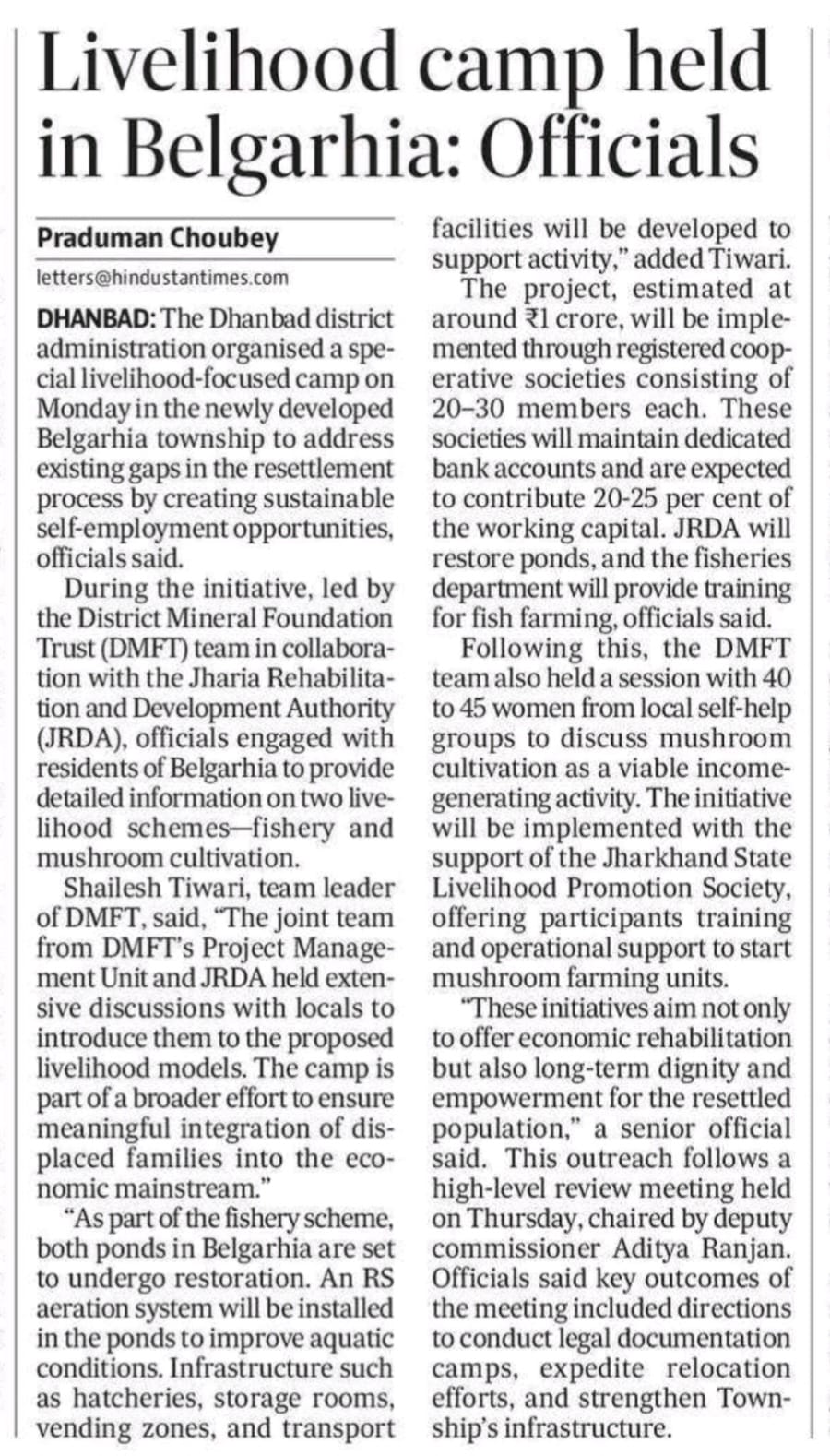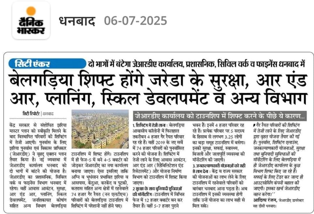 To accelerate rehabilitation, ensure public safety, and deliver integrated infrastructure under the Revised Jharia Master Plan, JRDA has been strengthened with a two‑tier governance model and specialised functional verticals.